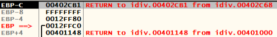 3. 올리디버거를 이용한 'idiv.exe' 분석