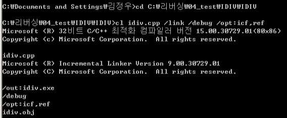 1) VS 2008을 이용하여 'idiv.exe' 파일을 제작한다.