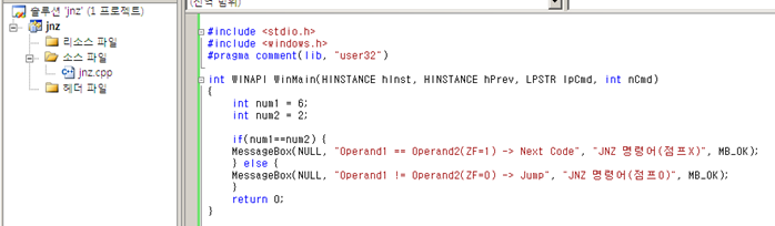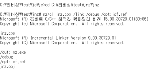 1) VS 2008을 이용하여 'jnz.exe' 파일을 제작한다.