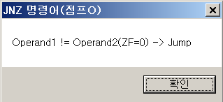 - 내용 : 비교 결과 값이 '0'이 아니면(ZF=0 설정된 경우), 해당 주소로 점프한다.