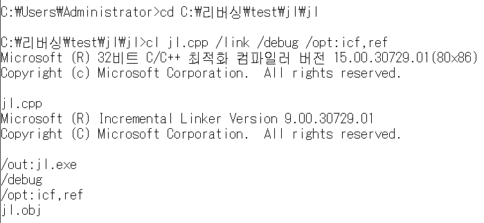 2) 'cl' 명령어를 이용한 최적화 컴파일 실시