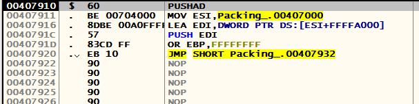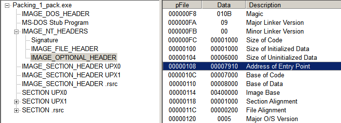 -패킹파일(Packing_1_pack.exe): EP - 0x7910