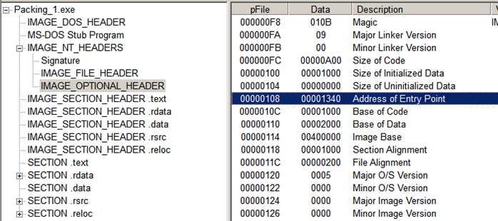 - 원본 파일(Packing_1.exe): EP - 0x1340