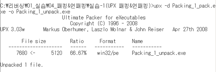 3. 'Packing_1_pack.exe' 파일 UPX 언패킹