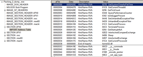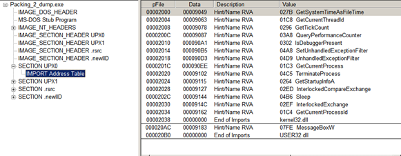 - Packing_2_dump.exe 파일 IAT 정보를 연결 전 IAT