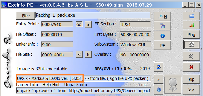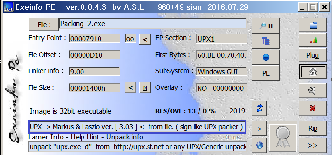 2. 'Packing_1.exe' 파일 UPX 패킹
