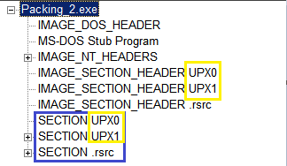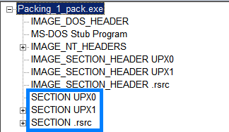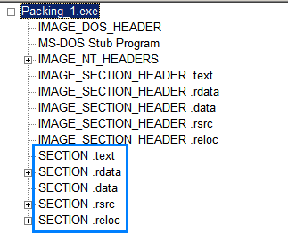 - 패킹 파일(Packing_1_pack.exe) : 섹션 3개