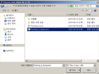 - Packing_2_dump.exe 파일 IAT 정보를 연결 후 IAT