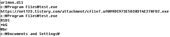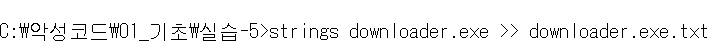 - downloader.exe.txt_01 을 보면 파일경로와 인터넷주소로 보이는 문자열이 포함되어있다.