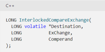 | InterlockedCompareExchange | Target이 역참조하는 값을 Value로 만들고 원래의 값을 반환 |