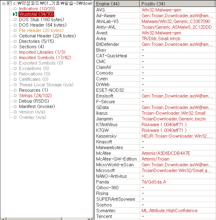 - downloader.exe.txt_02를 보면 여러 함수들과 dll정보들을 확인할 수 있다.