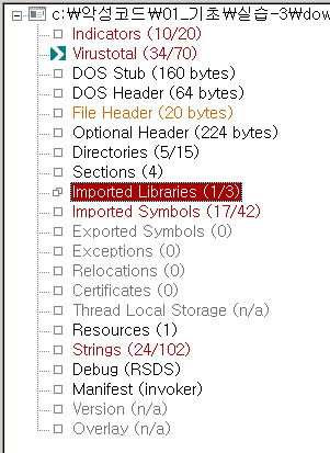 6) 'PeStudio' 도구를 이용하여 파일을 분석를 정리한다.