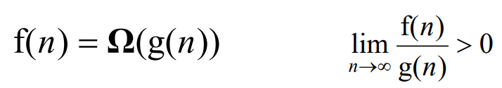 점근적 하한선을 나타내고 알고리즘이 아무리 좋은 상황이더라도 비교 함수보다는 같거나 좋지 않음을 표현한다.
