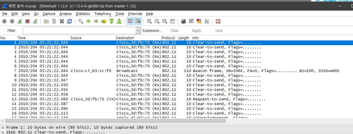 Aircrack-ng-1.1-win 으로 패킷분석-4.pcap 파일을 올리자.