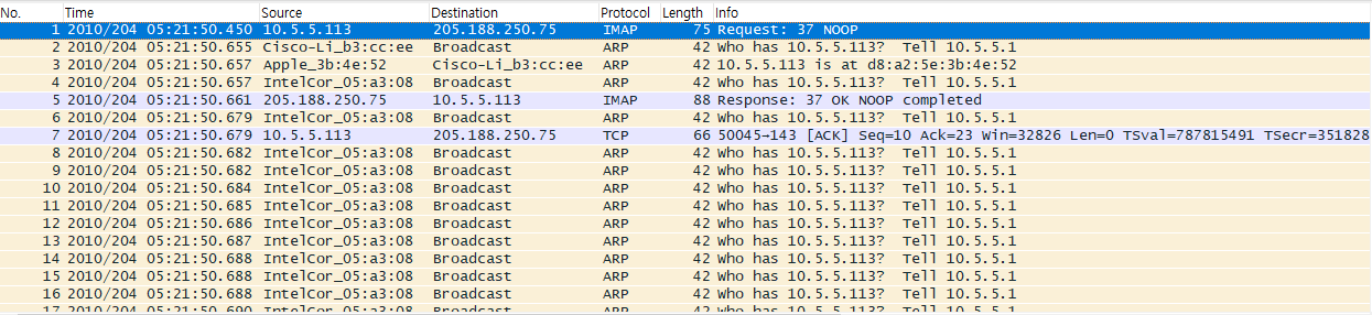 1) '패켓 분석-4.pcap' 파일을 Wireshark로 오픈한다.