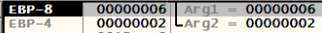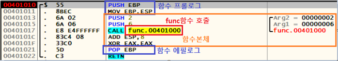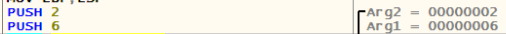 다음은 func함수에 전달할 인수 2와 6을 PUSH하는 모습이다.