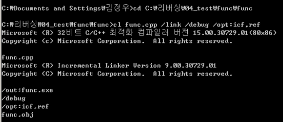 2) 'cl' 명령어를 이용한 최적화 컴파일 실시