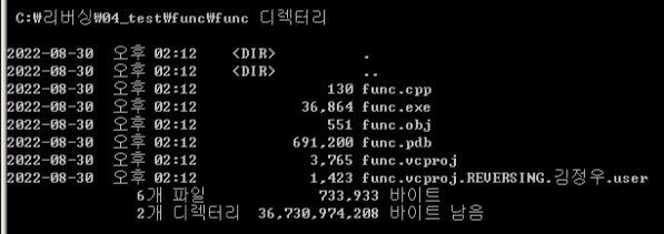 1) VS 2008을 이용하여 'func.exe' 파일을 제작한다.