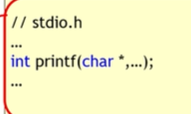 printf (" 문자열 %d ", 변수 상수 ); --> 서식문자, 형식지정자 필요함